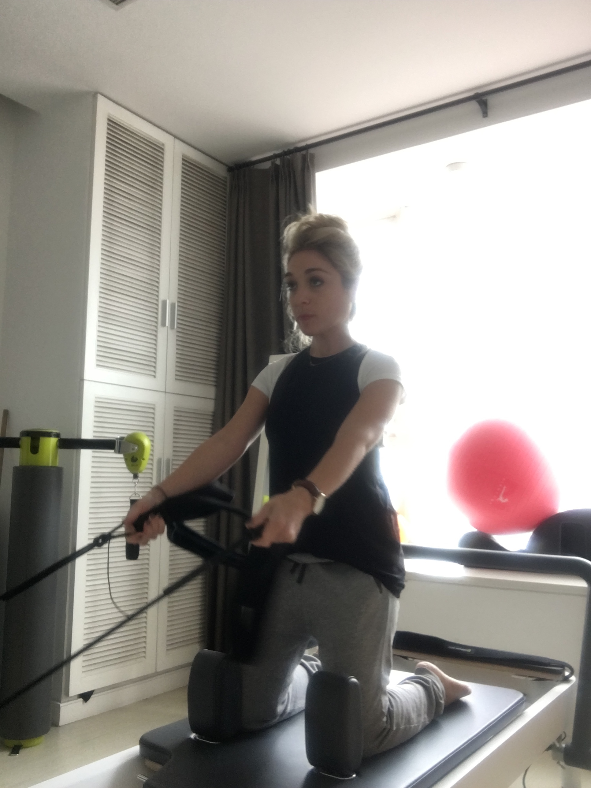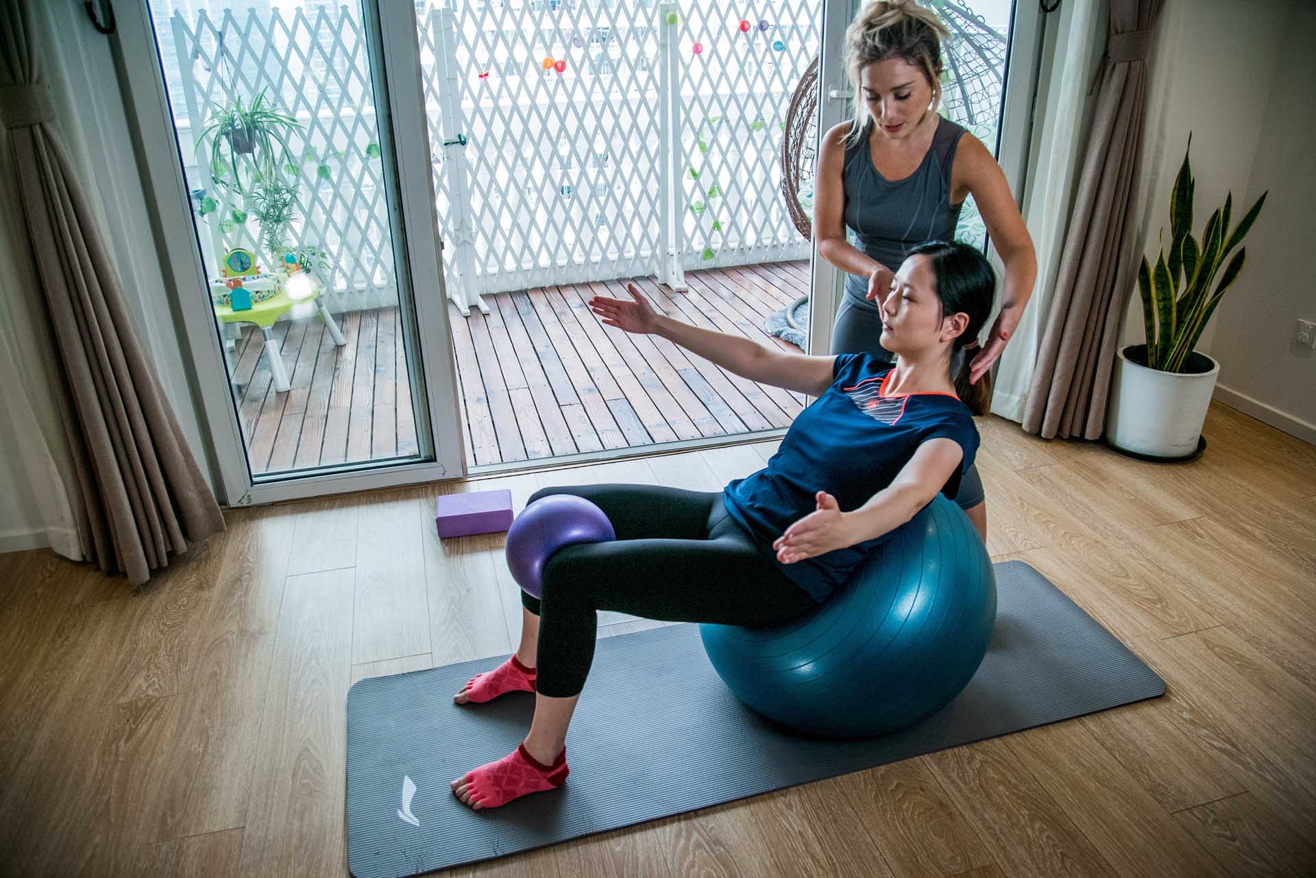 Jey shares with you pictures from ballet, pilates, in group of individual working, with adults and children, also practicing outdoor pilates in Shangai, Nice, Bali…